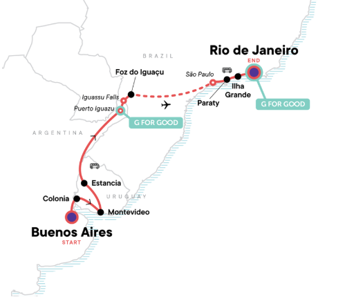 Experience some of South America's most fascinating highlights in 17 days on a diverse journey from Buenos Aires to Rio de Janeiro. You can expect the vibrant atmosphere of Buenos Aires, the colonial charm of Colonia, the relaxed city life of Montevideo, authentic gaucho experiences on a Uruguayan estancia, the mighty Iguazu Falls, the coastal idyll of Paraty and Ilha Grande, and finally, the legendary Rio de Janeiro. This tour combines culture, nature, beaches, local encounters, and unforgettable landscapes into a true South American adventure.