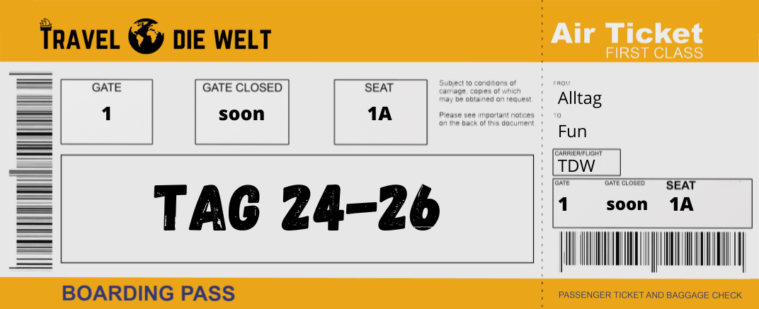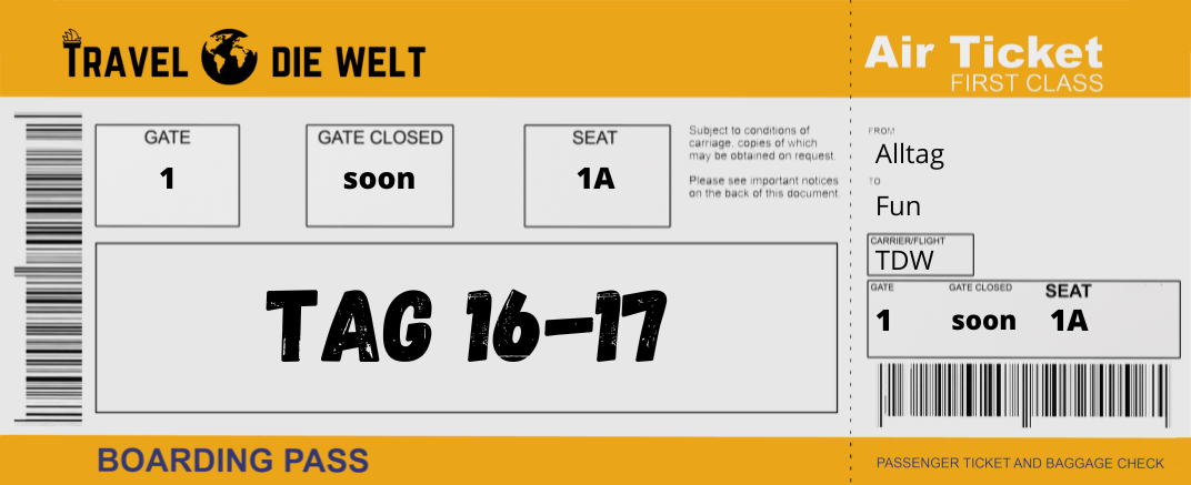 Der Flughafentransfer bei deiner Anreise an Tag 1 ist nicht im Preis inbegriffen. Wenn du einen Transfer wünscht, sag uns einfach bei deiner Buchung über das Notizfeld Bescheid, dieser kann für 50,00 EUR hinzugebucht werden. Wir können diesen auch noch später buchen, wenn du dir noch nicht sicher bist.