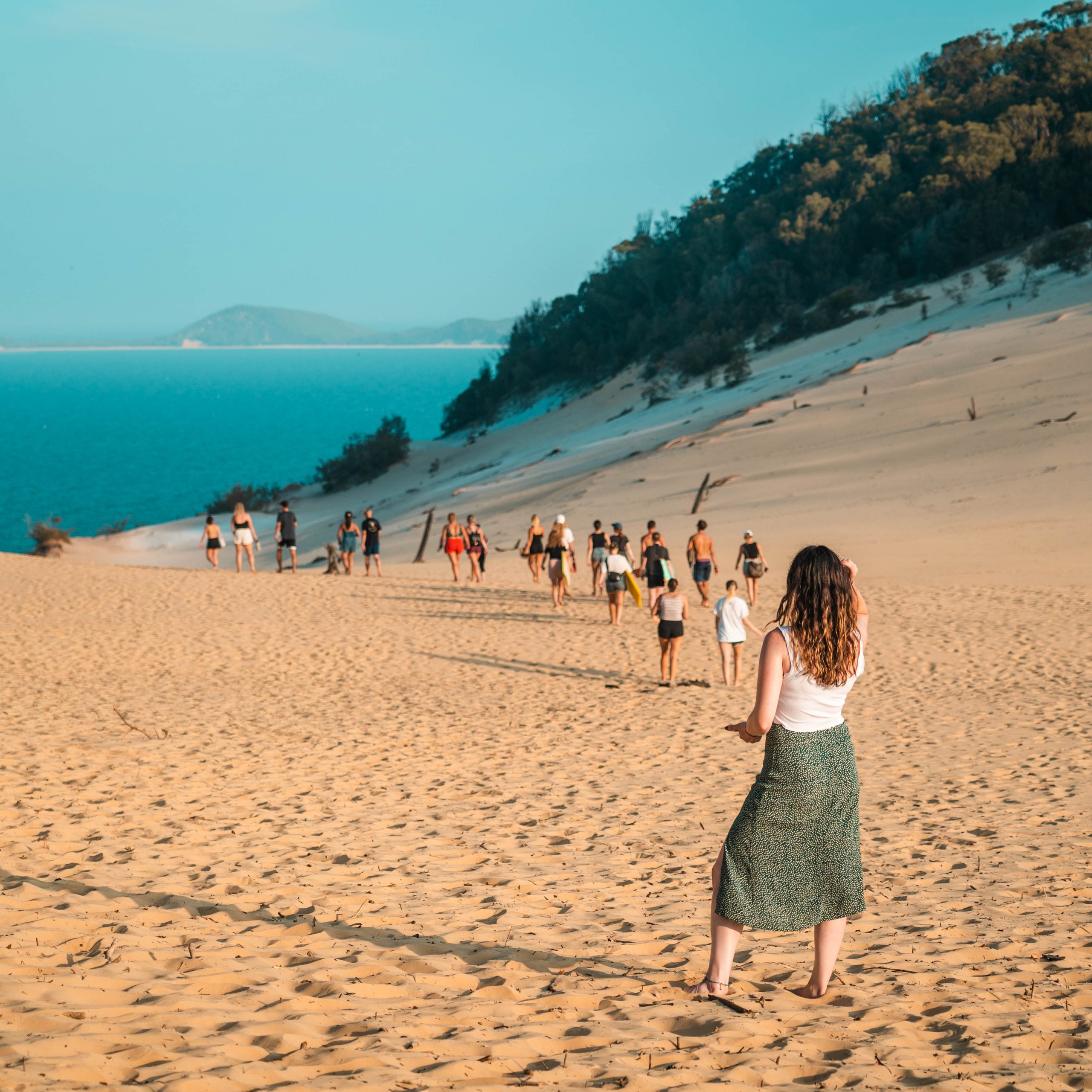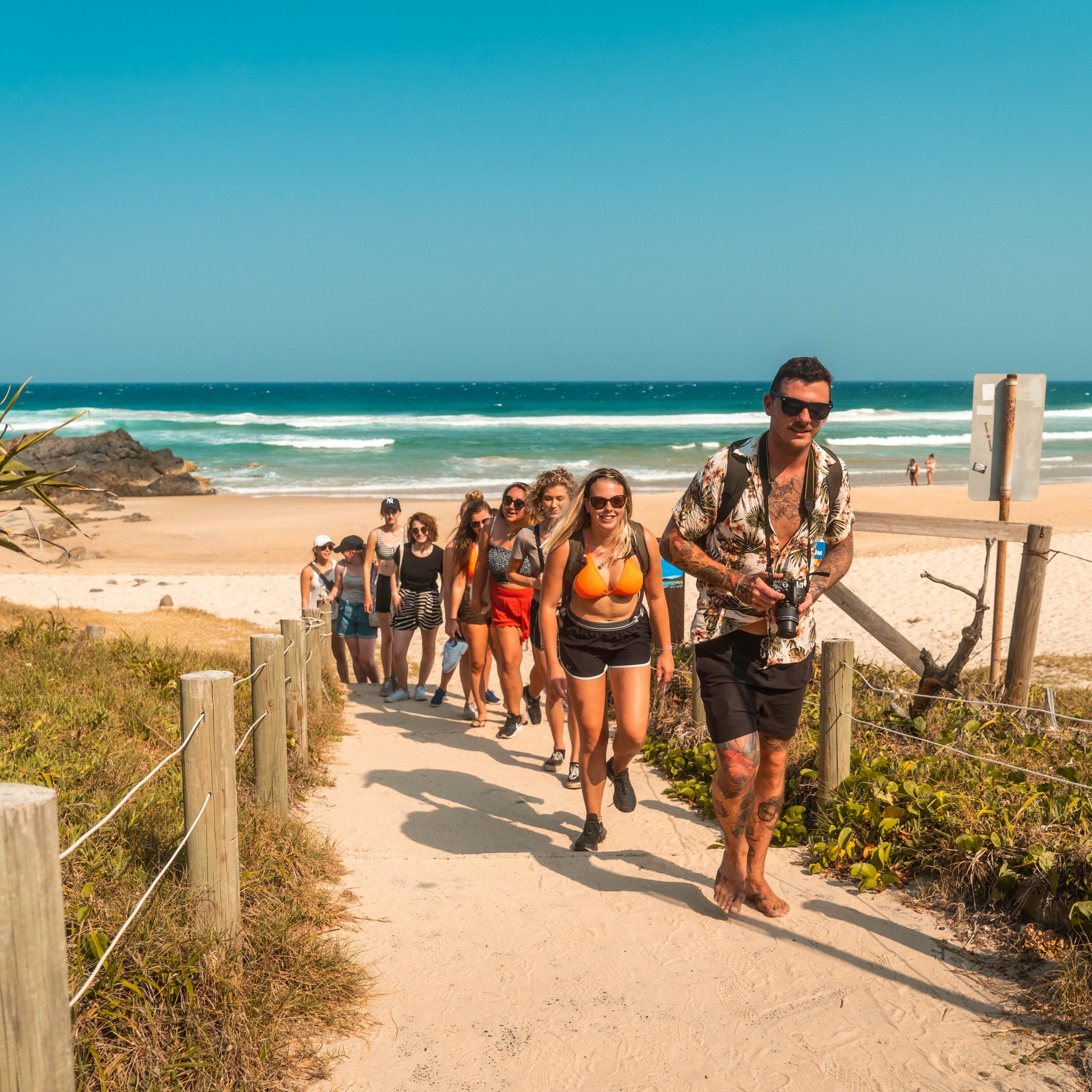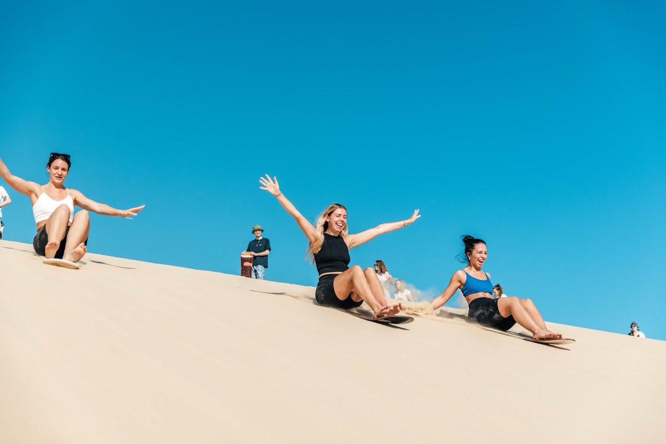 Wir beginnen mit dem Frühstück auf Fraser Island, bevor wir unseren Lagerplatz aufräumen und abbauen. Dann fahren wir zum Ausgangspunkt des Lake-Wabby-Wanderwegs, wo wir durch die Sanddünen zu diesem tropischen Paradies wandern! Nach unserer Wanderung zum Lake Wabby essen wir zu Mittag, bevor wir uns auf den Weg zum Strand machen, um zum Lastkahn zurückzukehren. Sobald wir wieder auf dem Festland sind, kehren wir zum Schuppen für Allradfahrzeuge zurück, wo ihr die Autos auspackt und schnell reinigt. Wir kehren zwischen 15 und 16 Uhr zum Freedom Rainbow Beach zurück.