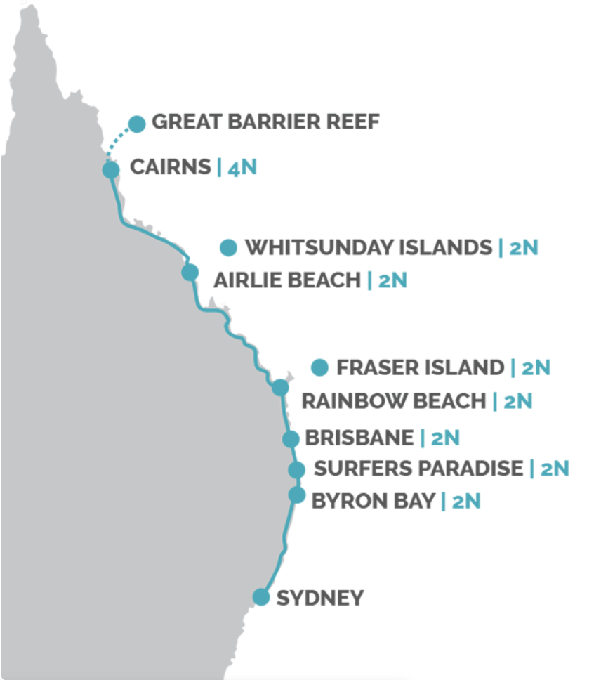 Entdecke alle ikonischen Highlights der australischen Ostküste mit unserer ultimativen East Coast Tour. Von Sydney bis zum Great Barrier Reef führt dich dieses rasante Abenteuer zu unkonventionellen Strandstädten, Weltkulturerbestätten, legendären Surfstränden, unberührten Landschaften und dem Great Barrier Reef! Die besten drei Wochen deines Lebens!