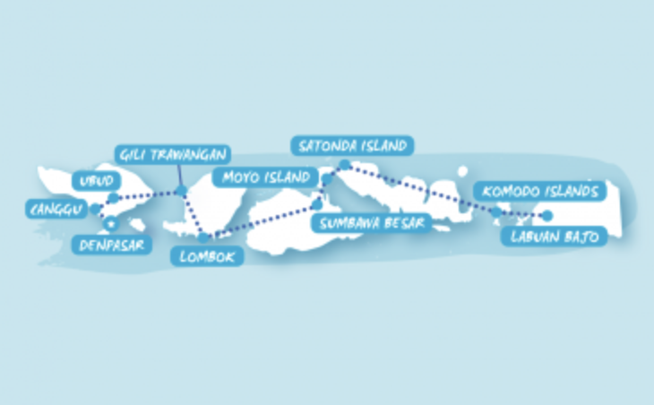 Labuan Bajo, Flores (LBJ). Häufig ist ein internationaler Rückflug preiswerter, von Denpasar, Bali (DPS). In dem Fall kann man einen Inlandsflug am letzten Tourtag nach Denpasar (DPS) buchen.