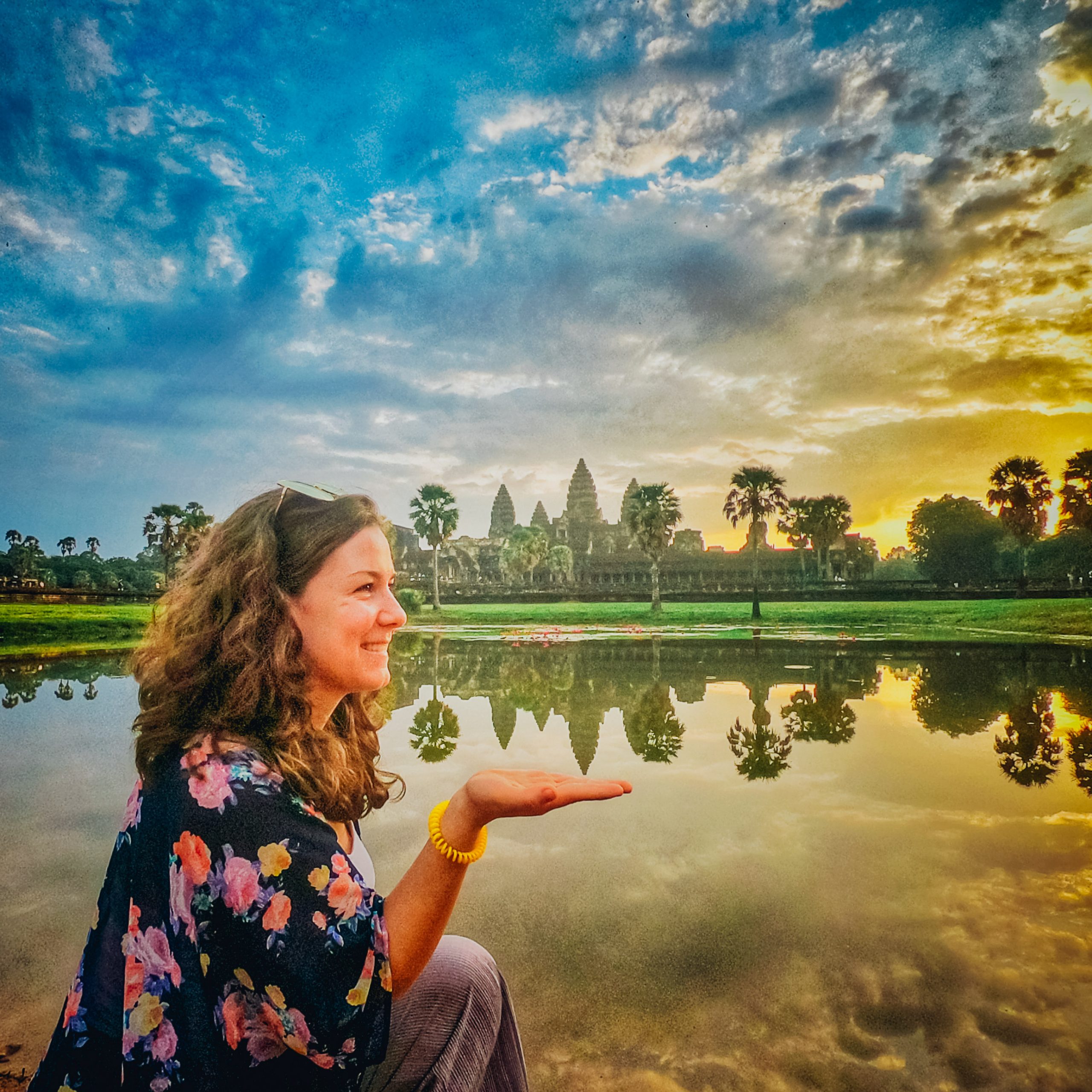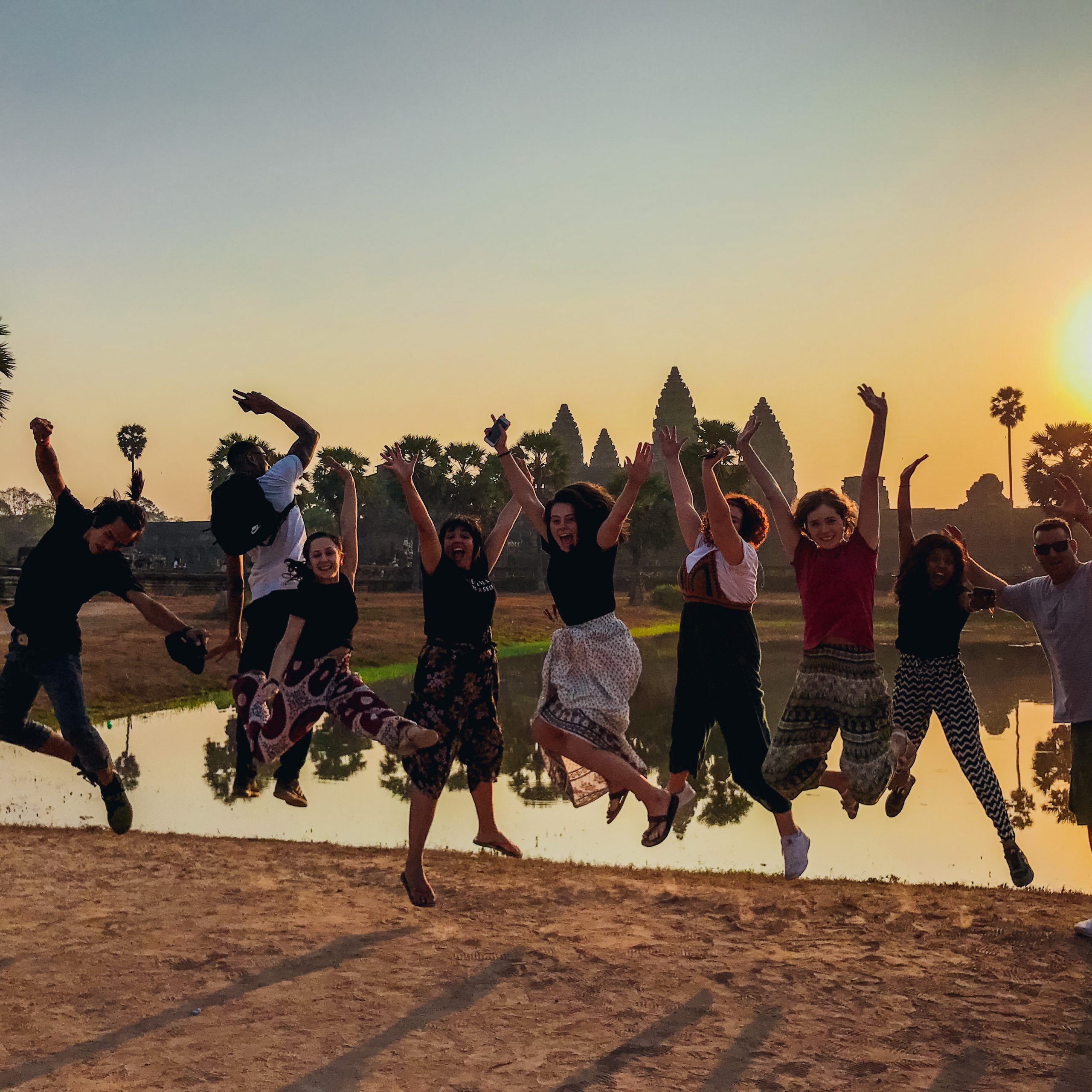 Aufstehen und strahlen, Leute. Ihr werdet heute nicht so schnell vergessen. Es ist euer letzter Tag in Siem Reap, und ihr werdet das größte religiöse Monument der Welt besuchen. Sagt (Angkor) waaaat? Ja, ihr habt richtig gehört. Wir gehen nach Angkor Wat, einer riesigen 200 Hektar großen Anlage, die dem Berg Meru, der Krippe der hinduistischen Götter, nachempfunden ist. Nun, wir wollen es nicht verschreien, indem wir sagen, dass dies eine der erstaunlichsten Erfahrungen eures Lebens sein wird, aber... nun ja... dies wird definitiv eine der erstaunlichsten Erfahrungen eures Lebens sein. Wir werden rechtzeitig zum Sonnenaufgang auf dem UNESCO-Weltkulturerbe eintreffen. Macht eure Kameras bereit. Schließlich, wenn ihr es nicht auf Instagram postet, seid ihr überhaupt dagewesen? #DefinitivKeinFilterNötig. Der Nachmittag gehört euch, um Siem Reap zu erkunden, geliebte Menschen anzurufen und ihnen von eurem Tag zu erzählen, oder ein dringend benötigtes Nickerchen zu machen, bevor wir unsere letzte Nacht auf der Pub Street verbringen. Chantet mit uns: PUB STREET! PUB STREET! PUB ST- nicht? OK, vielleicht später.
