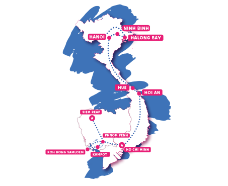 Wir könnten sagen, dass dies die Reise deines Lebens ist, aber das wäre gelogen. Es ist mehr als das. Viel mehr als das. Dies ist das ultimative Rucksackabenteuer durch Kambodscha und Vietnam. Reise von Siem Reap bis nach Hanoi entlang der Küste von zwei der unglaublichsten Länder Südostasiens. Staune, wenn die Sonne über den Tempeln von Angkor Wat in Siem Reap aufgeht, weiche vor dem Spider Market in Phnom Penh zurück, nehme an einem traditionellen Kochkurs im verschlafenen Kampot teil und entspanne an den idyllischen Stränden von Koh Rong Samloem.