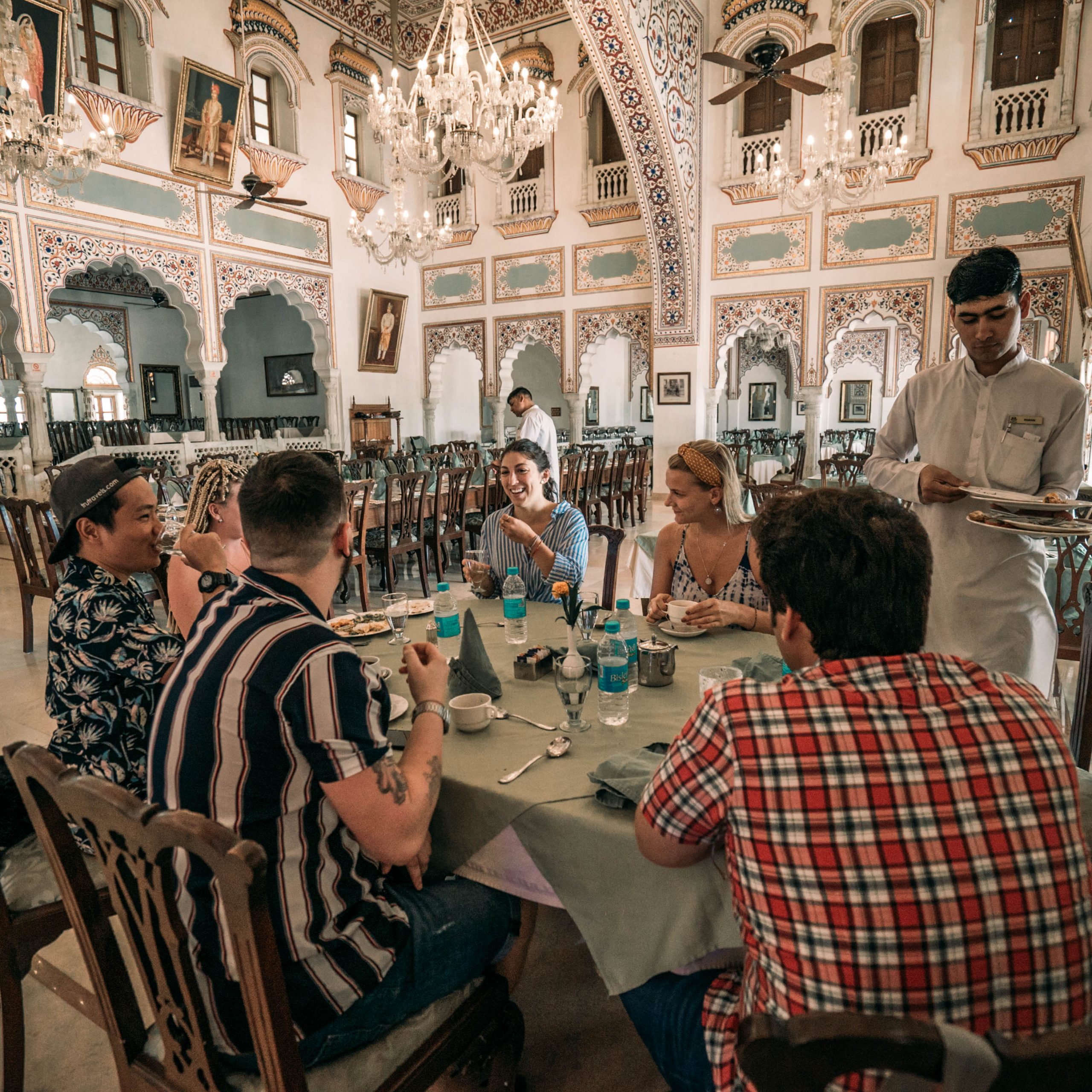Es ist der zweite Tag in Udaipur, und wir könnten nicht glücklicher darüber sein! Zieh deine bequemen Schuhe an, denn heute machen wir uns auf zu einer Stadtführung. Wir tauchen ein in die reiche Geschichte und architektonischen Wunder dieses wunderschönen Ortes und machen Halt an einigen der größten Hotspots der Stadt. Als Erstes besuchen wir den Stadtpalast, also sei bereit, von der kunstvollen Marmor- und Granitarbeit verzaubert zu werden, verziert mit farbenfrohen Glasschmuckstücken, kunstvollen Gravuren und eleganten Türmen und Balkonen. Es ist wirklich genauso beeindruckend, wie es sich anhört! Dann machen wir Halt am Jagdish-Tempel, bevor wir in den Norden dieser belebten Stadt fahren, um einen der erstaunlichsten Gärten zu besuchen - den Saheliyon-ki-Bari. Es war ein geschäftiger Tag, also genieße den Nachmittag, um auf eigene Faust zu erkunden, entspanne dich am See oder stöbere in den Märkten nach Souvenirs, bevor wir uns zum Abendessen mit der TruFam treffen und die unglaublichen ersten Tage in Indien Revue passieren lassen!