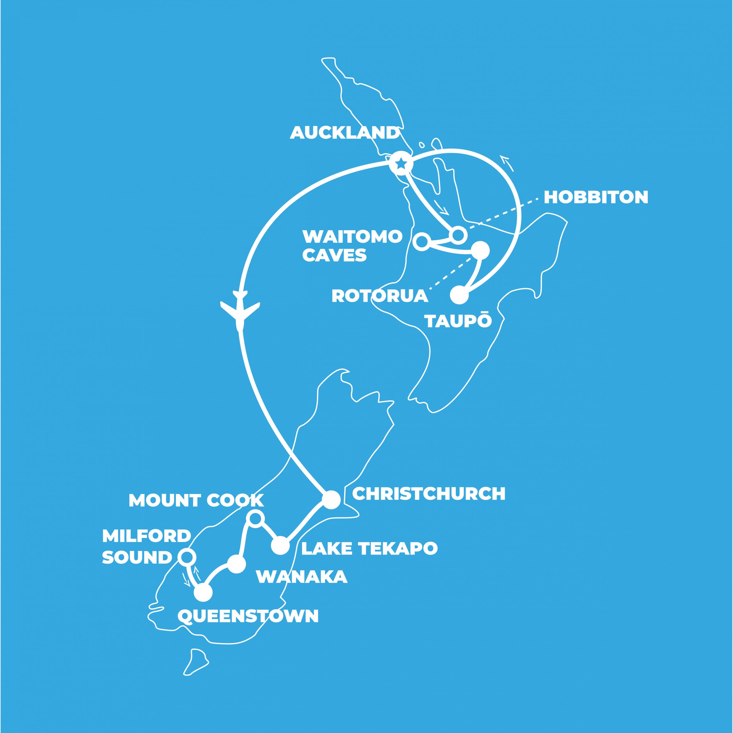 Seid ihr bereit, das Beste von Neuseeland in 13 epischen Tagen zu erkunden? Wir haben uns für dieses Neuseeland-Abenteuer mächtig ins Zeug gelegt … Macht euch bereit, in Auckland loszulegen, bevor ihr die geothermische Magie von Rotorua und die 10/10-Stimmung von Taupo entdeckt. Denkt an Kajakfahren auf kristallklarem Wasser, die Erkundung von Hobbiton (bereitet euch auf euren besten Gandalf-Eindruck vor) und die Jagd nach Wasserfällen an den Huka Falls.