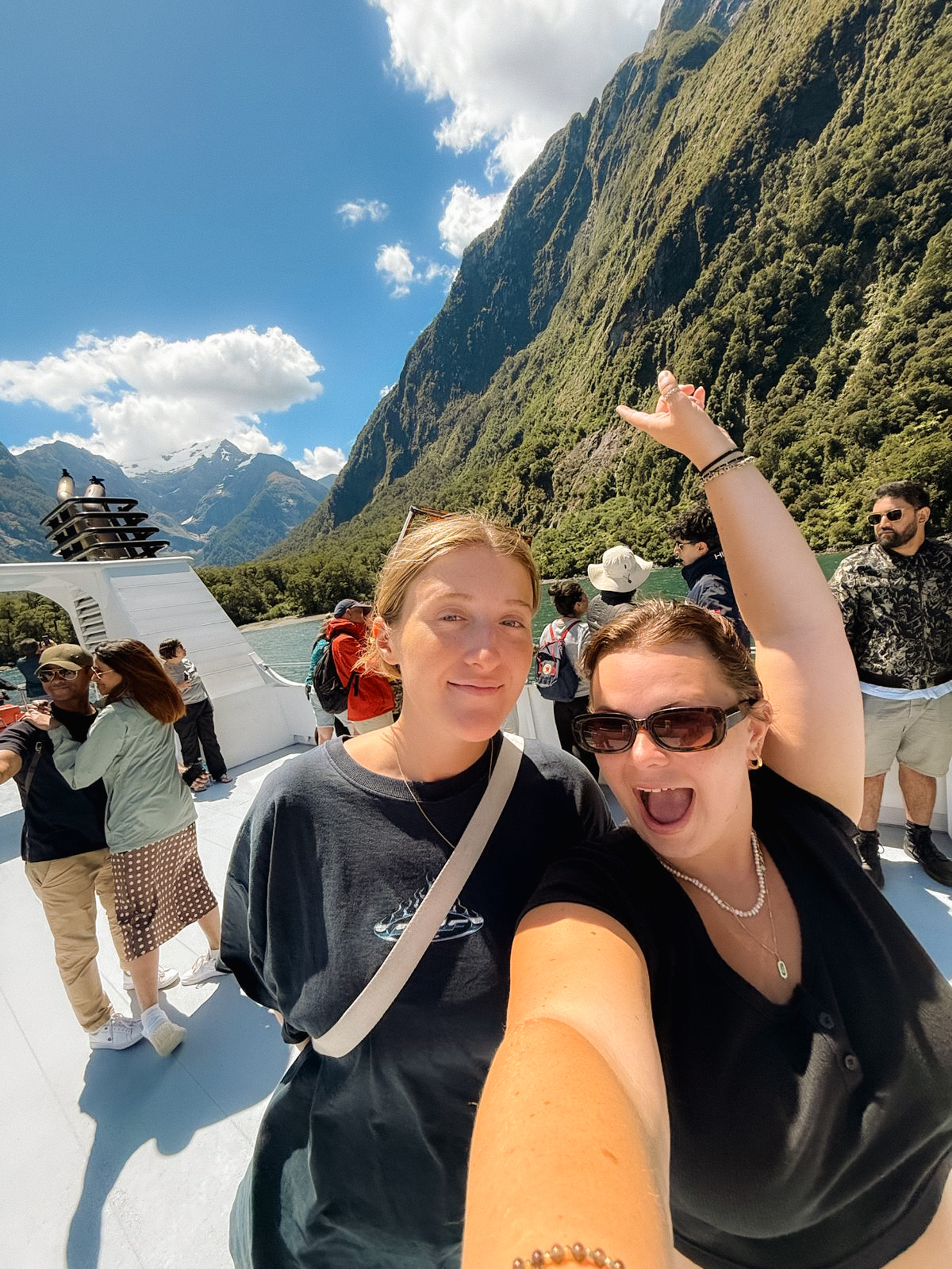 Aufwachen! Unser letzter ganzer Tag – könnt ihr das glauben? Die Zeit vergeht wirklich wie im Flug, wenn man Spaß hat! Heute stehen wir früh auf, um nach Milford zu fahren. Seid ihr bereit? Das Beste kommt zum Schluss. Milford Sound ist ein unglaublicher Fjord, der oft als „achtes Weltwunder“ bezeichnet wird. Am besten lässt sich dieser Anblick bei einer Tageskreuzfahrt genießen, also springen wir mit unseren Kameras an Bord. Wir werden epische Klippen, Berggipfel und neblige Wasserfälle sehen – der perfekte Abschluss unserer großartigen Zeit in Neuseeland. Wir haben schon viele unglaubliche Aussichten gesehen, aber diese hier ist vielleicht die beste ... Heute Abend fahren wir zurück nach Queenstown und stürzen uns ins Nachtleben, um unsere Abenteuer und die wunderbaren Freundschaften, die wir in den letzten 12 Tagen geschlossen haben, gebührend zu feiern. Wir weinen nicht, ihr etwa?