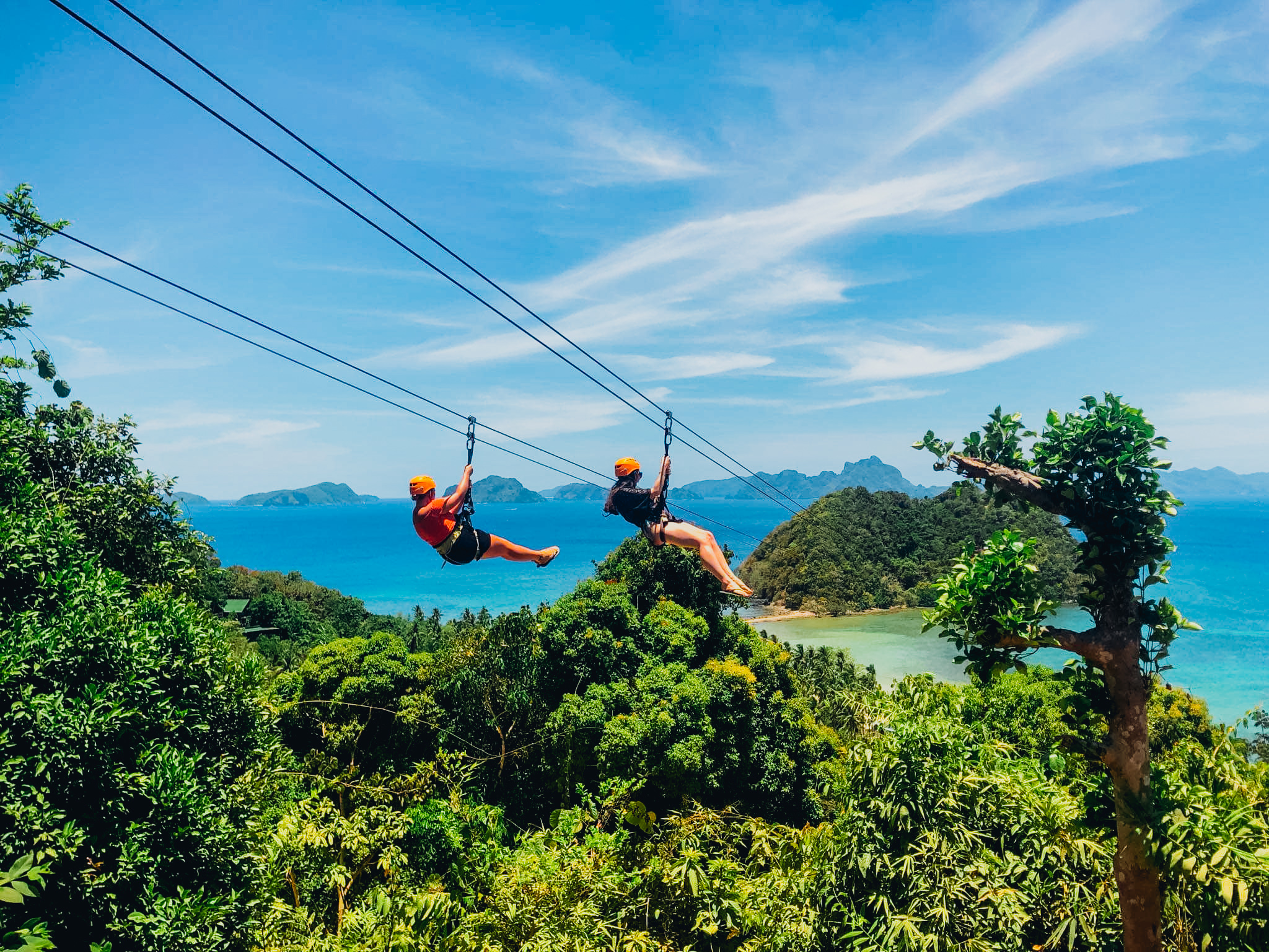 Zeit, El Nido auf dem Landweg zu erkunden! Wir beginnen unseren Tag mit einem Zipline-Erlebnis im Stil von Mission Impossible. Wir sausen von Strand zu Strand und genießen die unglaublichen Aussichten, die dein Blut in Wallung bringen werden. Nach einem adrenalingeladenen Vormittag fahren wir zum Nacpan Beach, einem der berühmtesten unberührten Strände der Philippinen, der von so üppigen Palmen gesäumt ist, dass man an der Realität zweifeln könnte. Die Zeit am Strand wird mit Sicherheit nicht ungenutzt verstreichen.