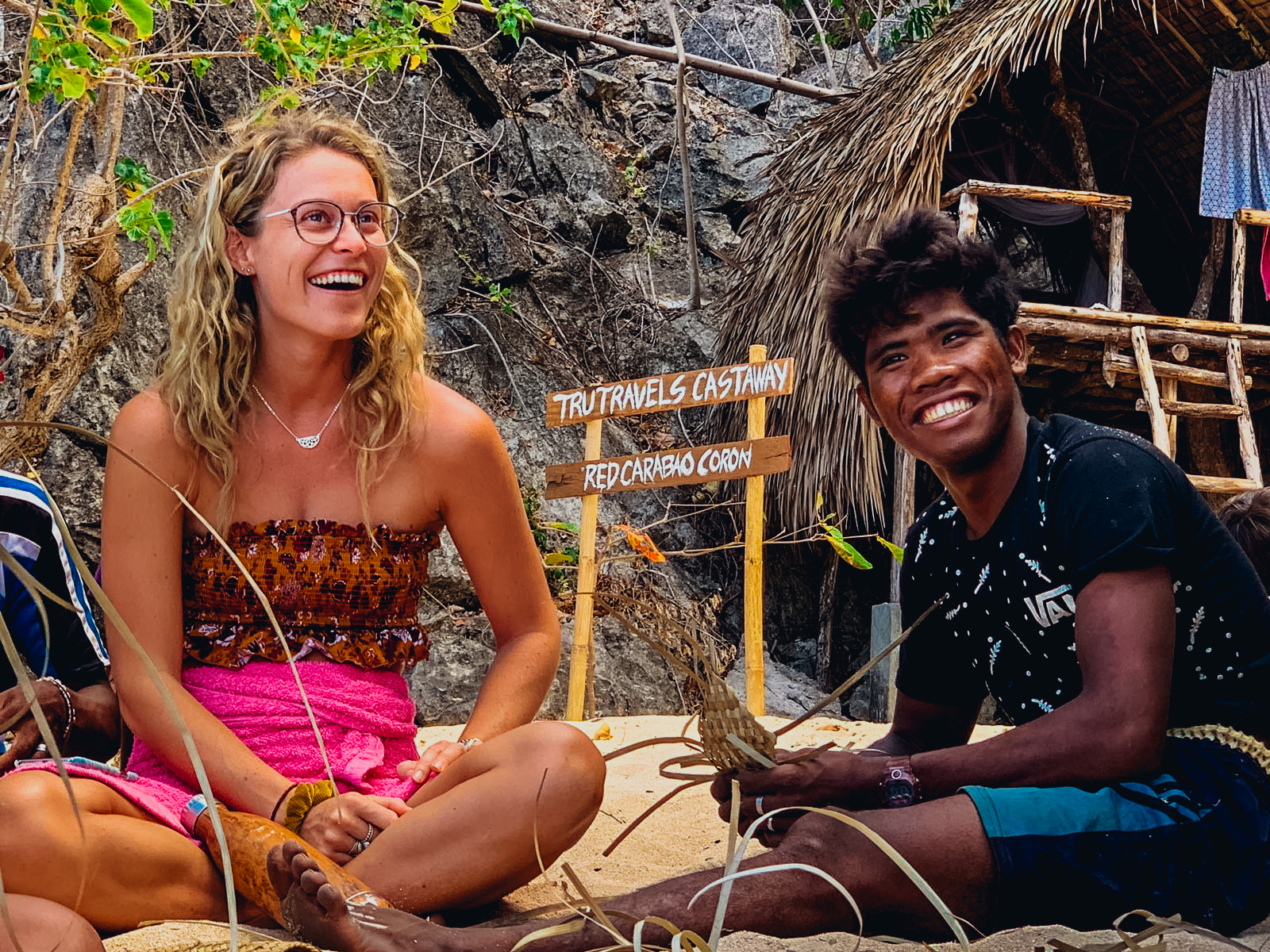 Bereit für ein einzigartiges Tru-Erlebnis? Nach einem vollgepackten Tag fahren wir zur Insel Daracotan, einem TruExclusive, wo du deine Castaway Isla Experience beginnst! Wir wollen nicht zu viel verraten, aber glaub uns, wenn wir sagen, dass es viel mehr Spaß machen wird, als dein eigener Zahnarzt mit einem Schlittschuh zu sein, wie der arme Tom Hanks in Castaway (wir ermutigen zu häufigen WILSON-Rufen während deines Aufenthalts). Es ist an der Zeit, einige Schiffswracks zu erkunden, bevor du an einer geführten Tour zur Insel Daracotan teilnimmst, auf der 88 Vollzeitbewohner leben (darunter auch ein oder zwei Schweine). Höre faszinierende Geschichten über ihr Erbe, lerne eine einheimische Familie kennen und erfahre, wie sich der Tourismus positiv auf ihr heutiges Leben auswirkt. Am Abend nehmen wir an einer traditionellen Kochvorführung teil, bei der du lernst, wie man auf philippinische Art isst! Beim gemeinsamen Abendessen verschlingen wir die lokalen Köstlichkeiten, die wir kurz zuvor zubereitet haben, und notieren uns in Gedanken, dass wir den Lebenslauf um den Titel "weltberühmter Koch" ergänzen werden, wenn wir wieder zu Hause sind. Jetzt ist es an der Zeit, den Abend am Lagerfeuer mit ein paar Bierchen ausklingen zu lassen!