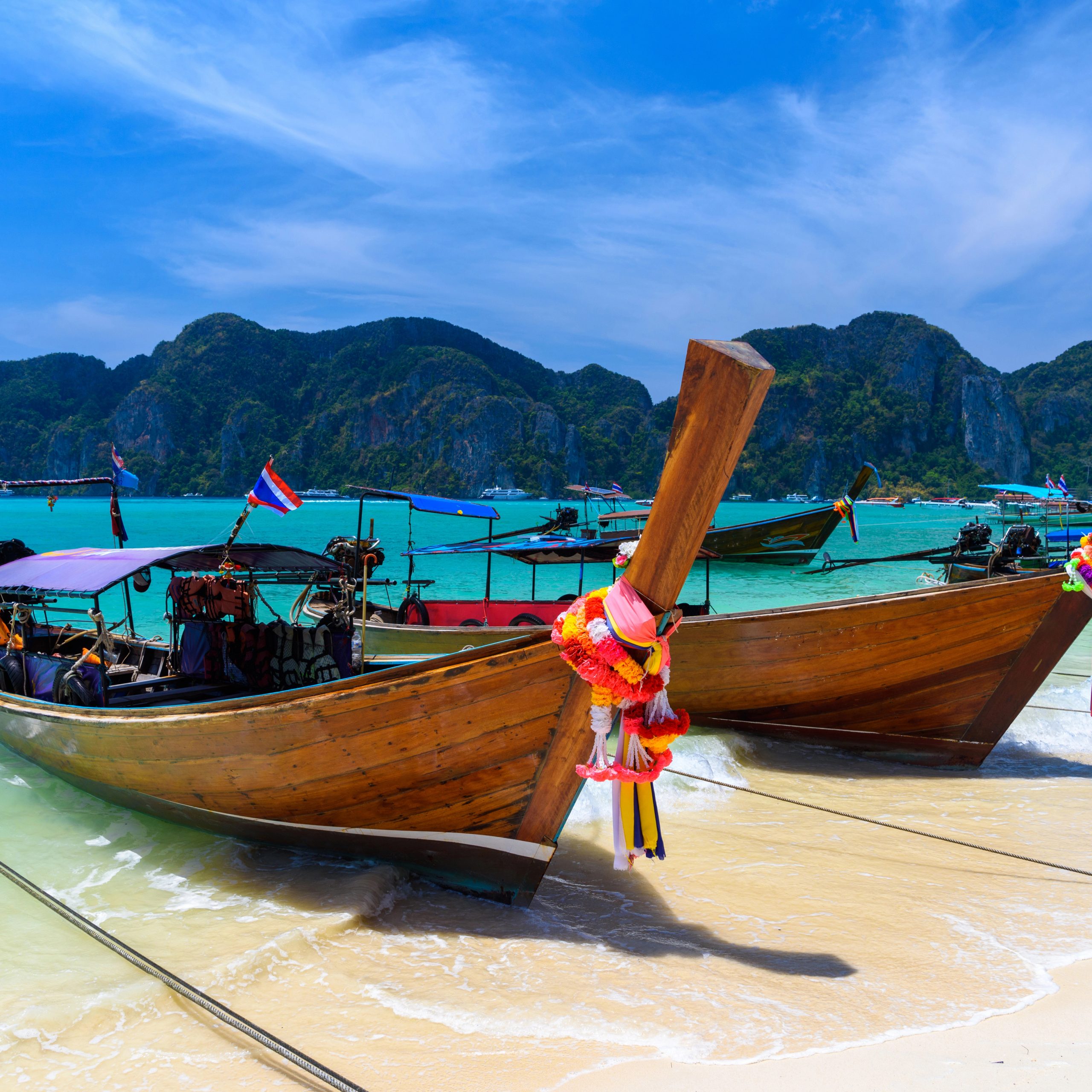 Mach dich bereit für das Inselparadies und nimm die Fähre zu den atemberaubenden Phi Phi Inseln. Nachdem du in deiner Unterkunft eingecheckt hast, ist es Zeit für ein klassisches thailändisches Erlebnis - eine Longtail-Bootstour über die Inseln. Du fährst an hoch aufragenden Kalksteinklippen vorbei, entdeckst versteckte Lagunen und hältst an unberührten Stränden, die aussehen, als wären sie direkt einer Postkarte entsprungen. Schnapp dir deinen Schnorchel und deine Maske, um die farbenfrohen Korallenriffe zu erkunden und mit den bunten tropischen Fischen zu schwimmen.
