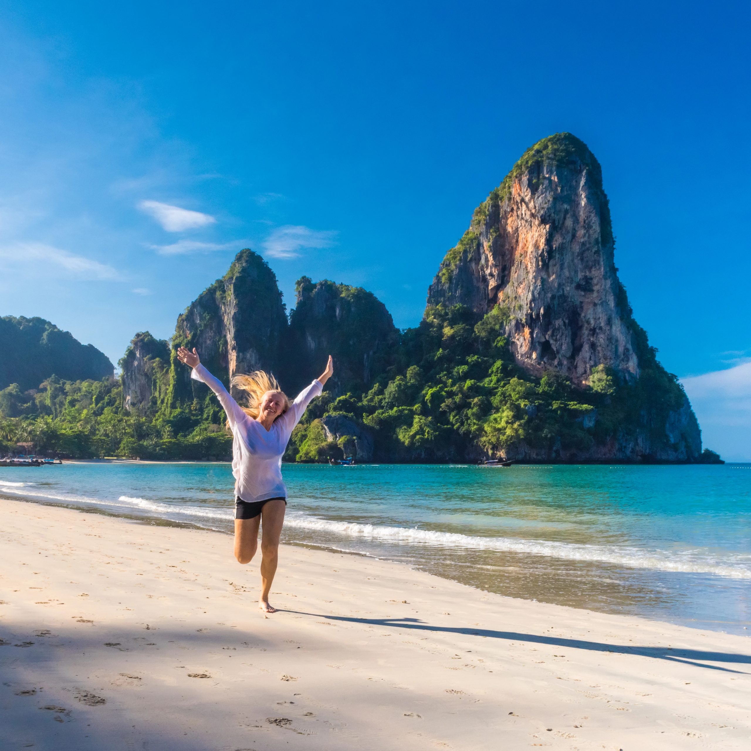 Dein thailändisches Abenteuer ist noch nicht vorbei! Heute besuchst du den weltberühmten Railay Beach, ein Paradies, das nur mit dem Boot erreichbar ist. Spüre den weichen Sand zwischen deinen Zehen, wenn du am Ufer entlang spazierst, nimm ein Bad im kristallklaren türkisfarbenen Wasser oder versuche dich im Klettern an den hoch aufragenden Kalksteinfelsen.