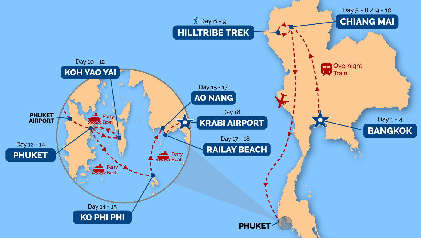 Von den pulsierenden Straßen Bangkoks bis zu den atemberaubenden Stränden von Krabi erlebst du in zweieinhalb Wochen das Beste der thailändischen Kultur, Küche, Natur und Gastfreundschaft. Diese Tour ist perfekt für neugierige Reisende, die über die typischen Touristenorte hinausgehen und tief in authentische thailändische Erfahrungen eintauchen wollen.