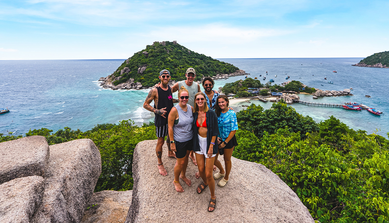 Zeit, das Tempo runterzufahren. Wir kommen auf dem wunderschönen Koh Tao an – bekannt für entspannte Vibes und glasklares Wasser. Ob du den Tag am Pool oder direkt am Meer verbringst – heute geht’s nur ums Auftanken im echten Inselstyle.