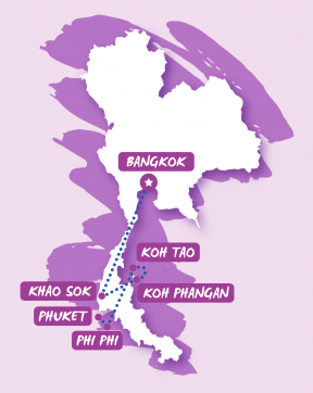 Willkommen beim Thailand Island Hopper, unserer zweiten Tour überhaupt, die wir im Laufe der Jahre verfeinert und perfektioniert haben. Wie bei unserer allerersten Tour, dem Thailand Experience, beginnt auch diese in Bangkok, wo alles für Tru begann und auch für dich beginnen wird. Schwimmende Bungalows auf kristallklaren Seen, Berge, Dschungel, weiße Sandstrände, tropische Inseln, Boote und Strandpartys sind einige der Dinge, die du auf deiner Reise durch einige unserer Lieblingsorte in Asien und der Welt erleben wirst.